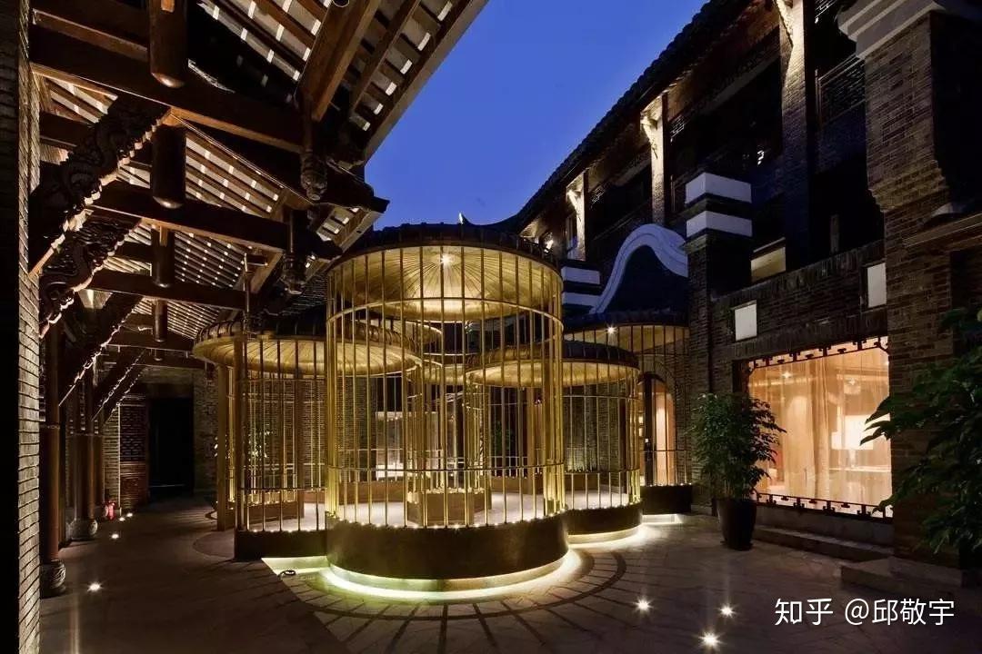 成都钓鱼台精品酒店位于宽窄巷子,八百年古韵风貌的世代沿袭,灰砖、粉墙、石板路传达出历史的气息,中西合璧的鸟笼很惊艳!透过房间精雕细琢的红色木窗就能望见繁华街景,真正的大隐隐于市。
