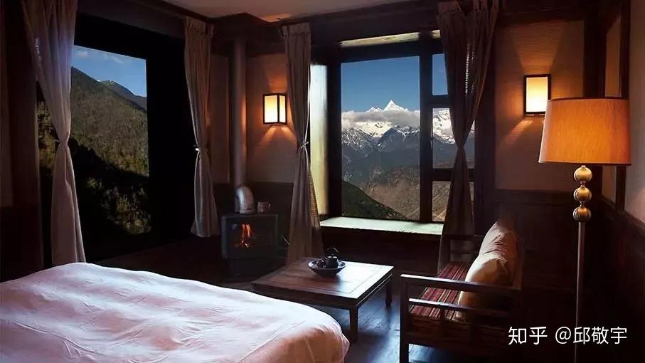 松赞梅里山居建在一个不为人知的小村庄里,一边是俊美的梅里雪山,另一边是雪山滋养的藏族村落和森林。在房间,就能见到壮观的雪山景象。