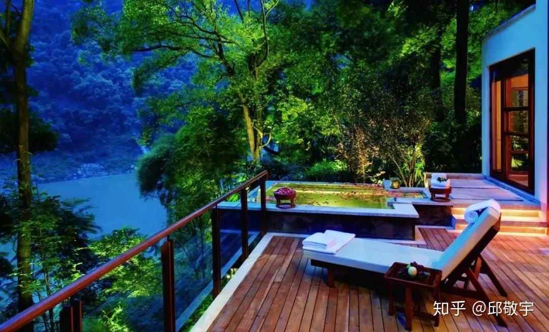 重庆柏联酒店与有着1600年历史的温泉古寺相依,温泉是这里最大的杀手锏~客房沿江而立,均有江景露台及独立私密的温泉泡池,融于山间。