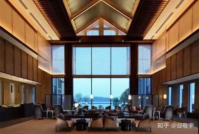 WEI只有天目湖一家分号,但仅凭这一家,就足够惊艳~酒店由一片中式古典建筑群构成,直面天目湖。挑空的大堂气场非凡,配置大面积落地玻璃窗,将美妙的湖景收入眼下。