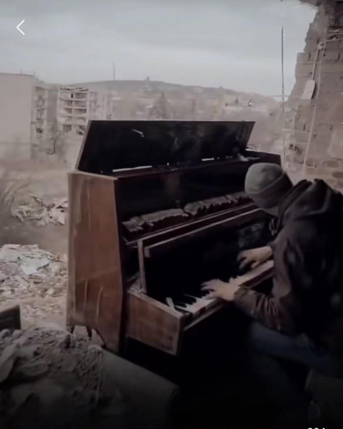 乌克兰战士在废墟里发现一架钢琴,忍不住弹起来